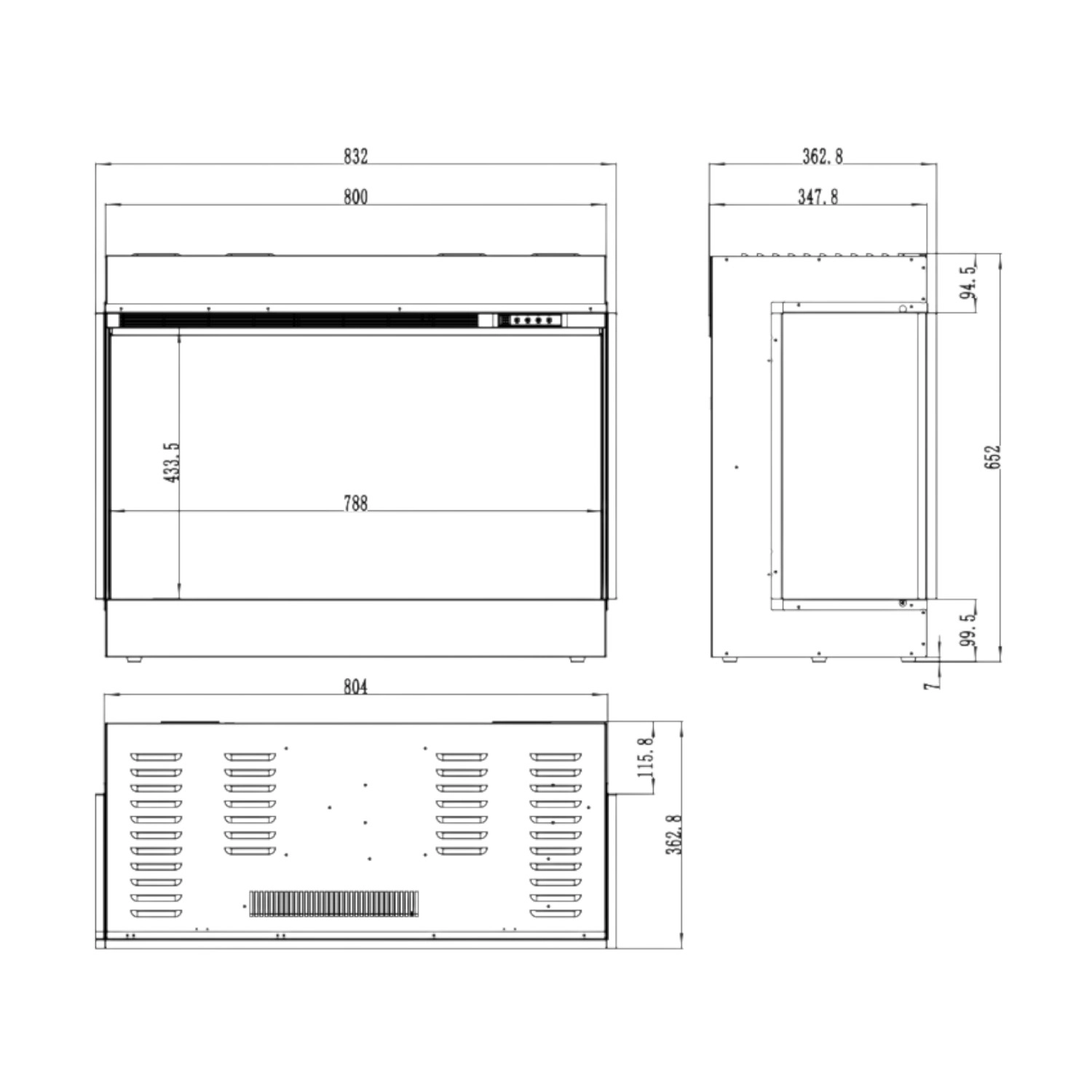 3-zijdige inbouw elektrische haard