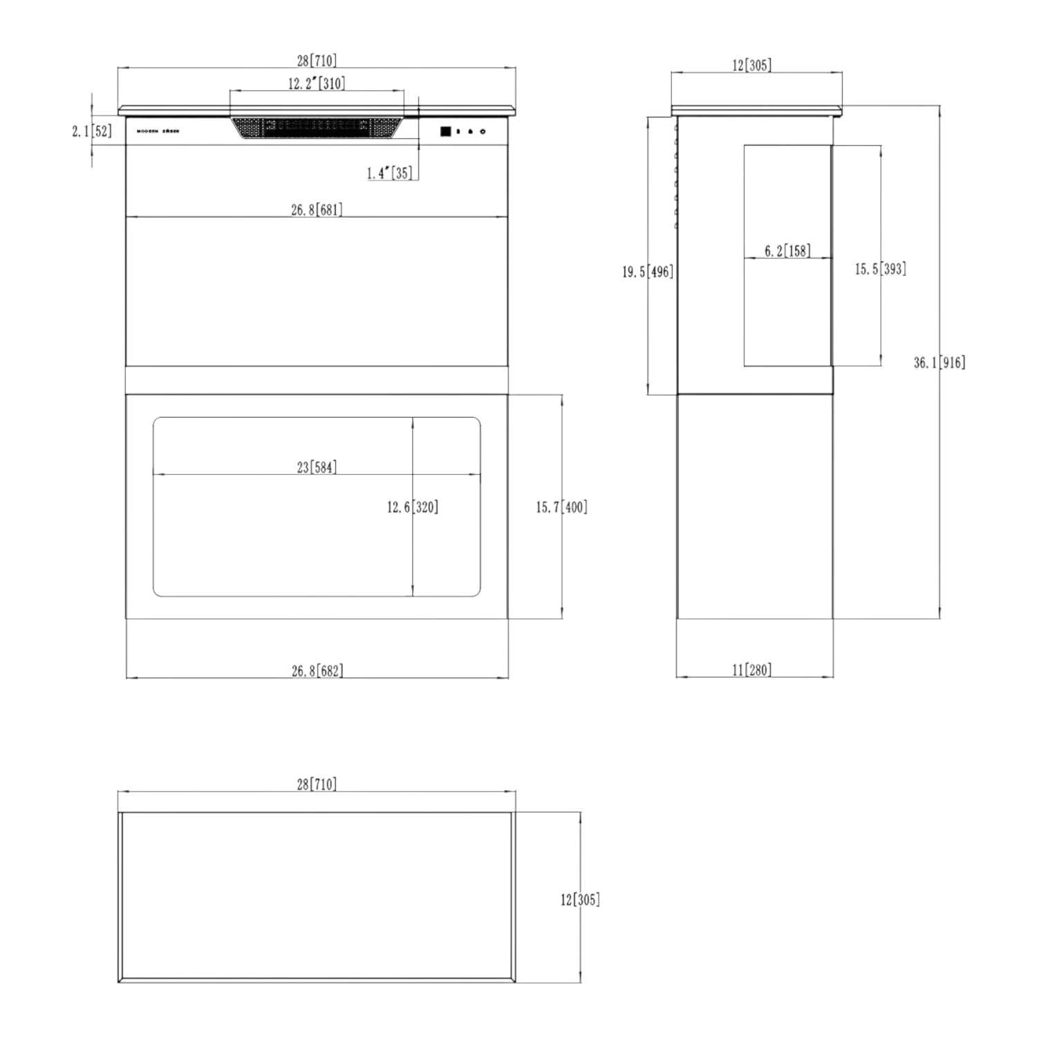 Driezijdige Elektrische Haard