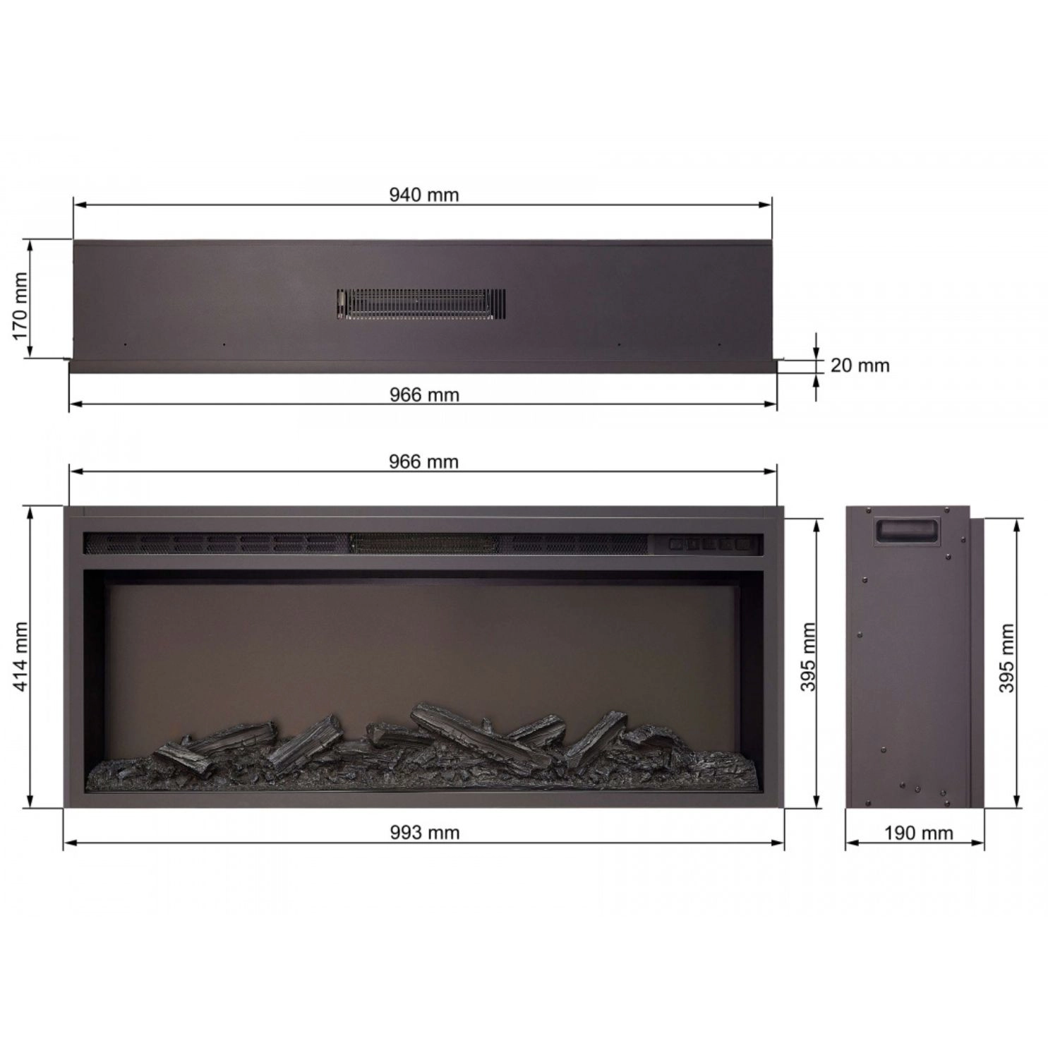 De haard heeft een breedte van 99,3 cm, een hoogte van 41,4 cm en een diepte van 19 cm, waardoor het een indrukwekkende toevoeging is aan elke ruimte. De eigentijdse zwarte afwerking en materialen zoals roestvrij staal en gehard glas zorgen voor duurzaamheid en een stijlvolle uitstraling.