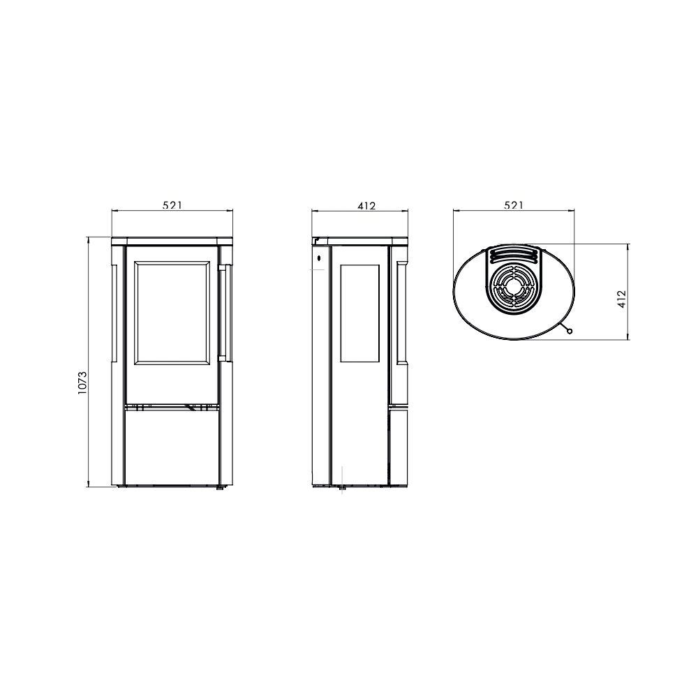 - Afmetingen: H 1073 × B 521 × D 412 mm