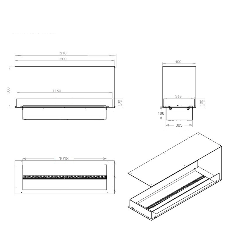 Foco Myst Room Divider 1200 waterdamp haard als kamerverdeler. Fantastische driezijdige inbouwhaard.