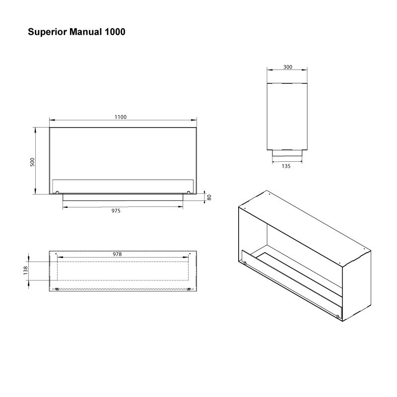 1100 is de breedte van de haard in millimeters.