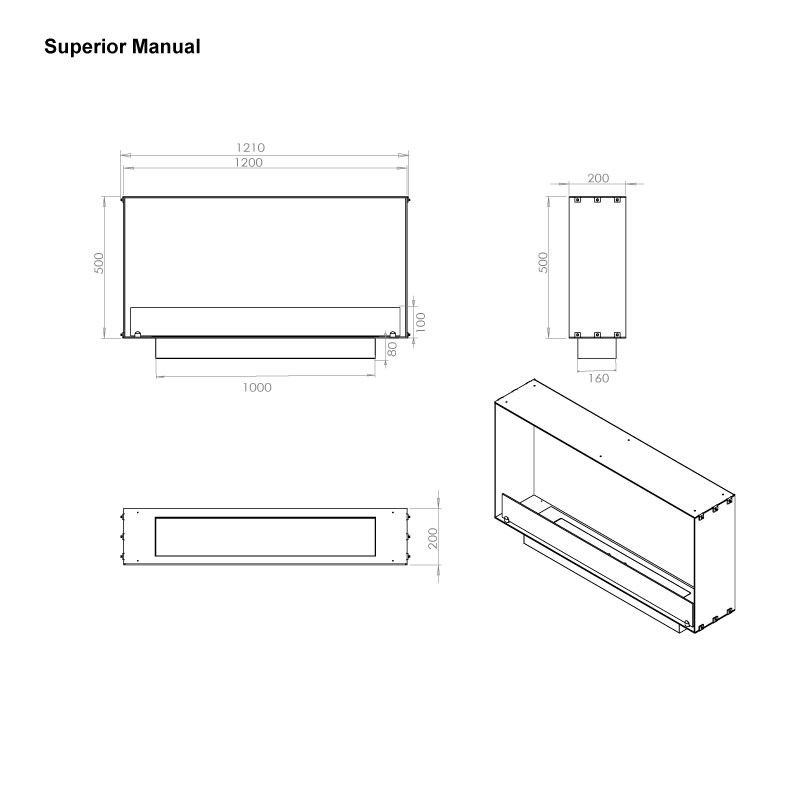 De haard is voorzien van een Superior manuele bio-ethanolbrander van 100 cm breed, met volgende specificaties: