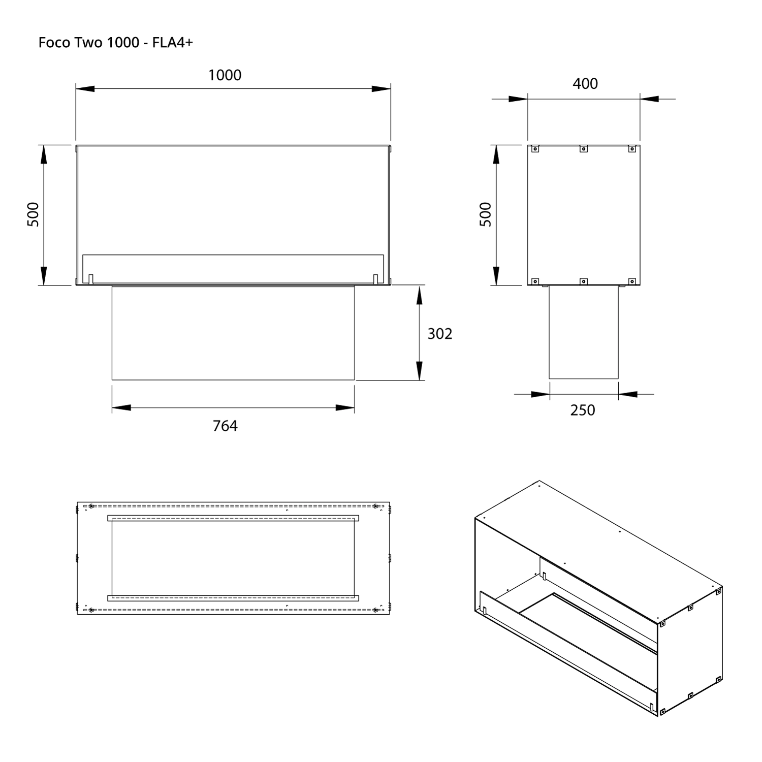 Foco Two 1000 is een stijlvolle dubbelzijdige tunnel bio-ethanolhaard, ontworpen voor inbouw en laat je het vuur bewonderen van twee tegenoverliggende zijden. Deze haard is ideaal voor tussenwanden of als scheidingselement tussen de woonkamer en keuken. Je kiest tussen een manuele of automatische bio-ethanolbrander, met regelbare vlamhoogte en afstandsbediening voor extra gebruiksgemak. De haard is vervaardigd uit 4 mm gepoederlakt roestvrij staal en uitgerust met gehard glas, wat zorgt voor een stabiele en mooie vlambeleving en een eigentijdse toets in elk huis.