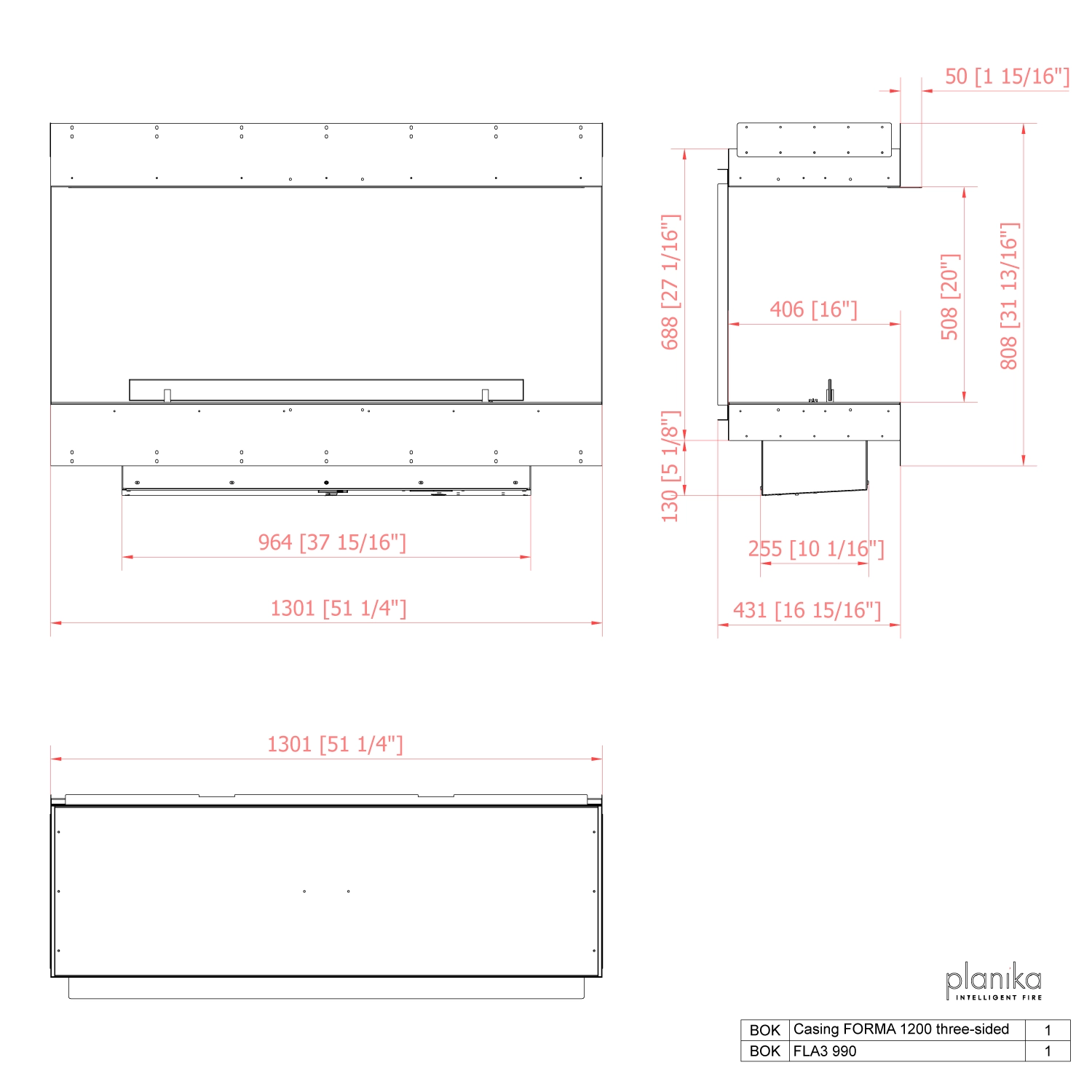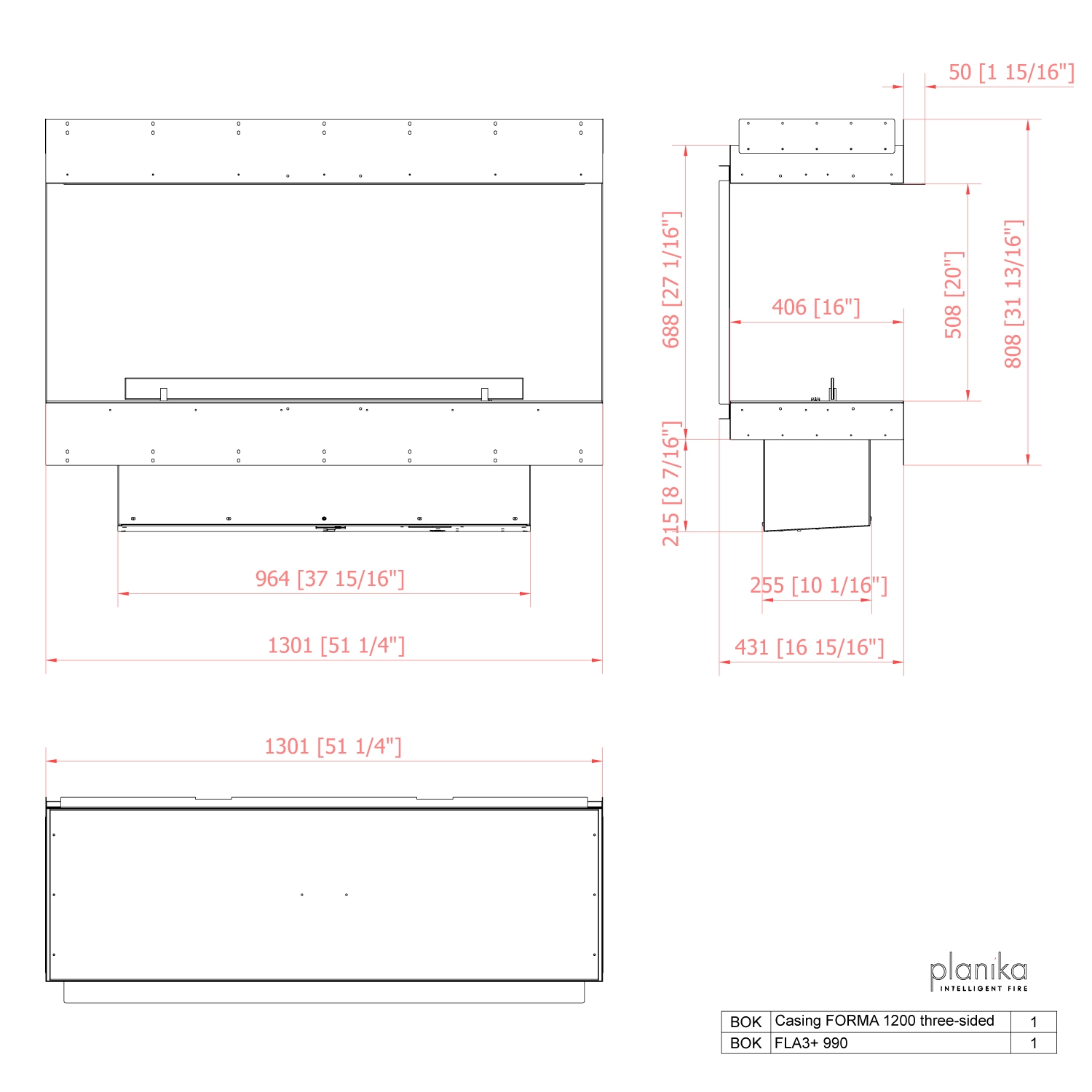 Planika Forma 1200 Driezijdig is een ingebouwde openhaard waarbij de vlammen van drie kanten te zien zijn. Een minimale ruimte van 70 m3 wordt aanbevolen voor deze openhaard.