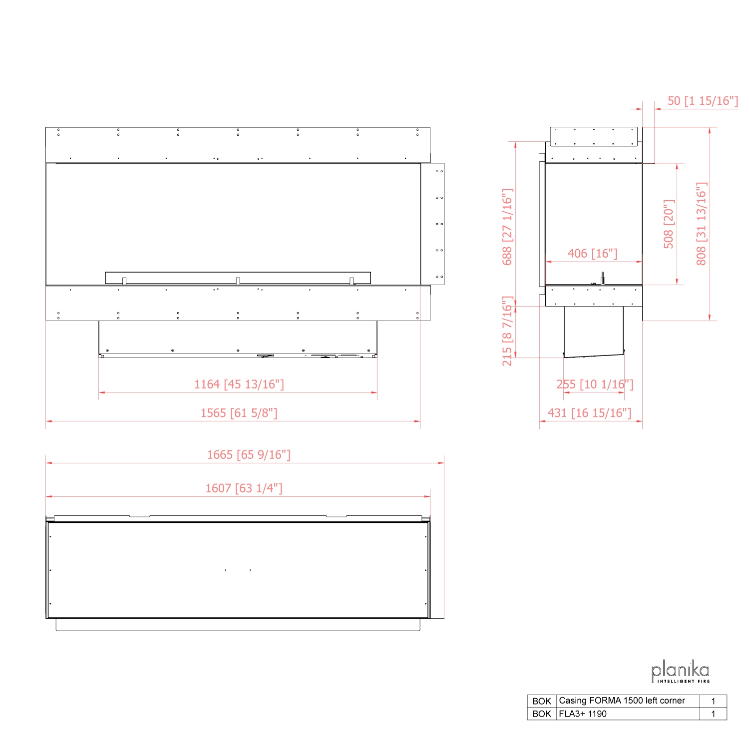 Planika Forma 1500 Linkshoekig  is een openhaard voor installatie in een linkerhoek waarbij de vlammen vanaf twee zijden zichtbaar zijn. Voor deze openhaard wordt een minimale ruimtegrootte van 94 m3 aanbevolen.