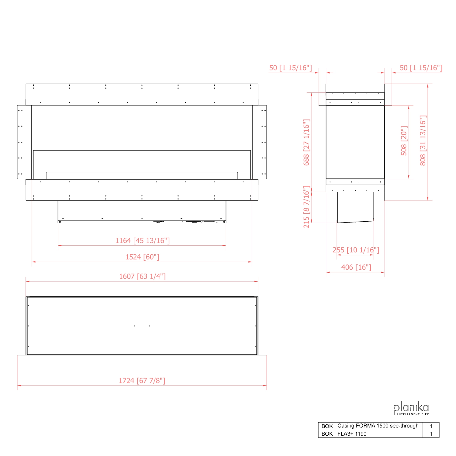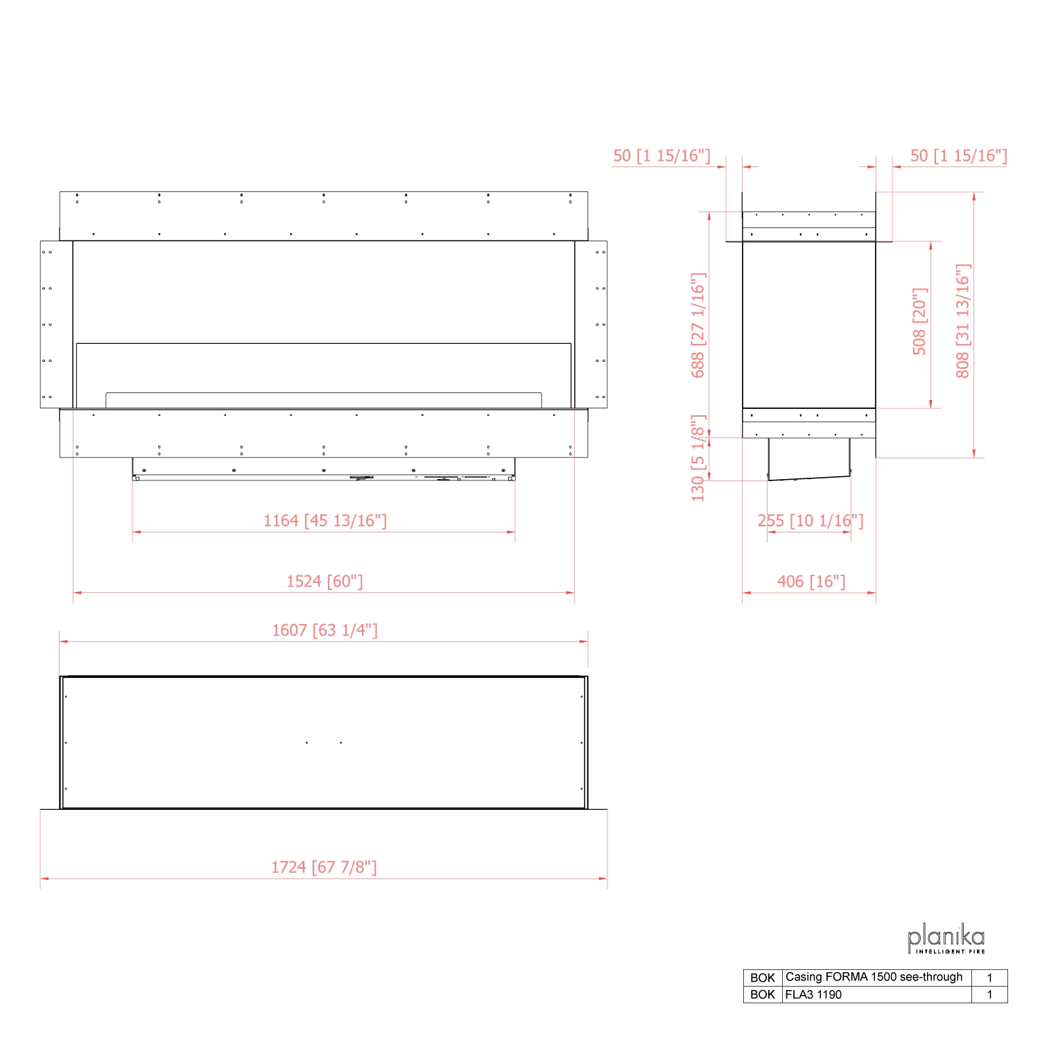 Planika Forma 1500 Tunnel is een openhaard voor installatie in de muur, zodat de vlammen vanuit twee tegenovergestelde zijden te zien zijn. Voor deze openhaard wordt een minimale ruimte van 94 m3 aanbevolen.
