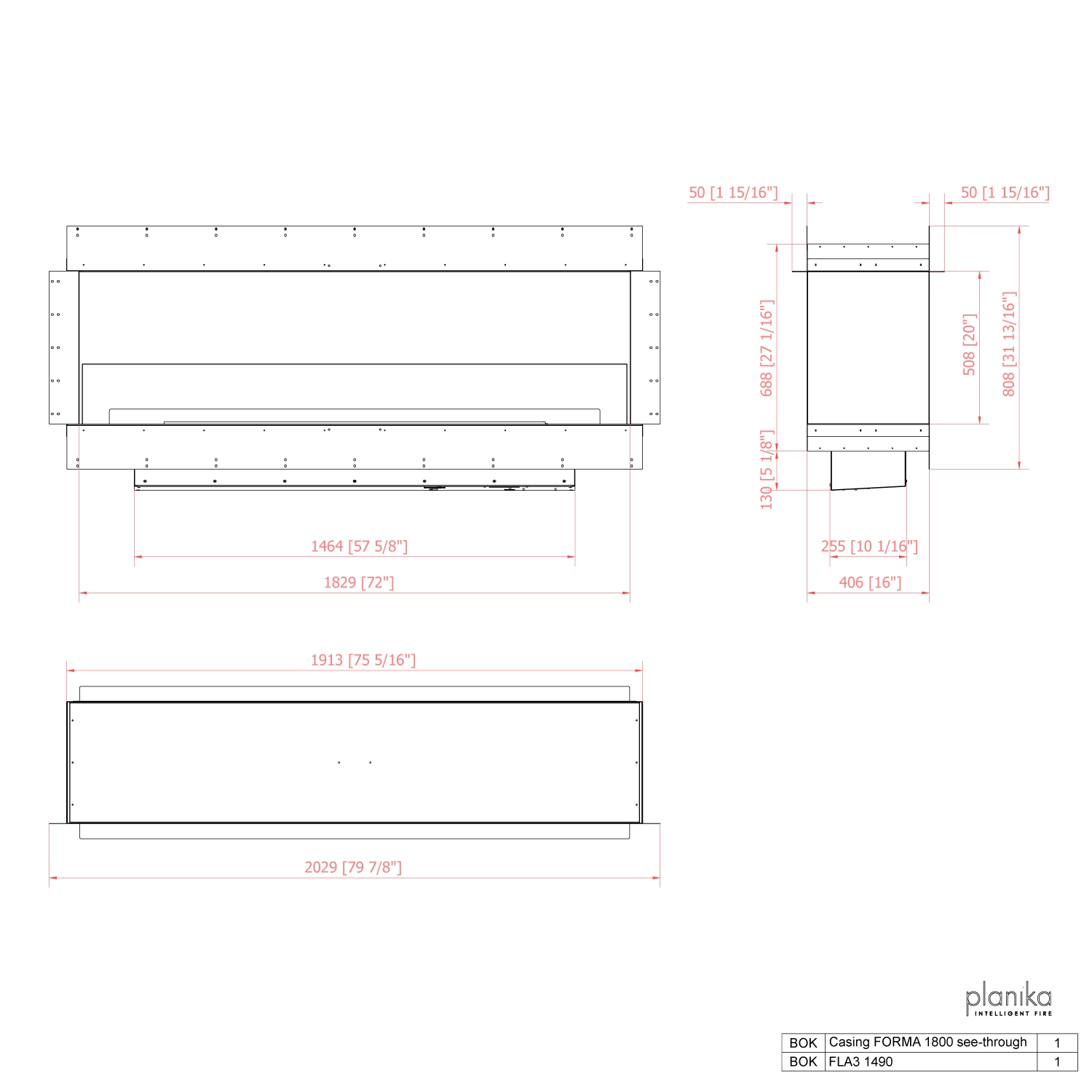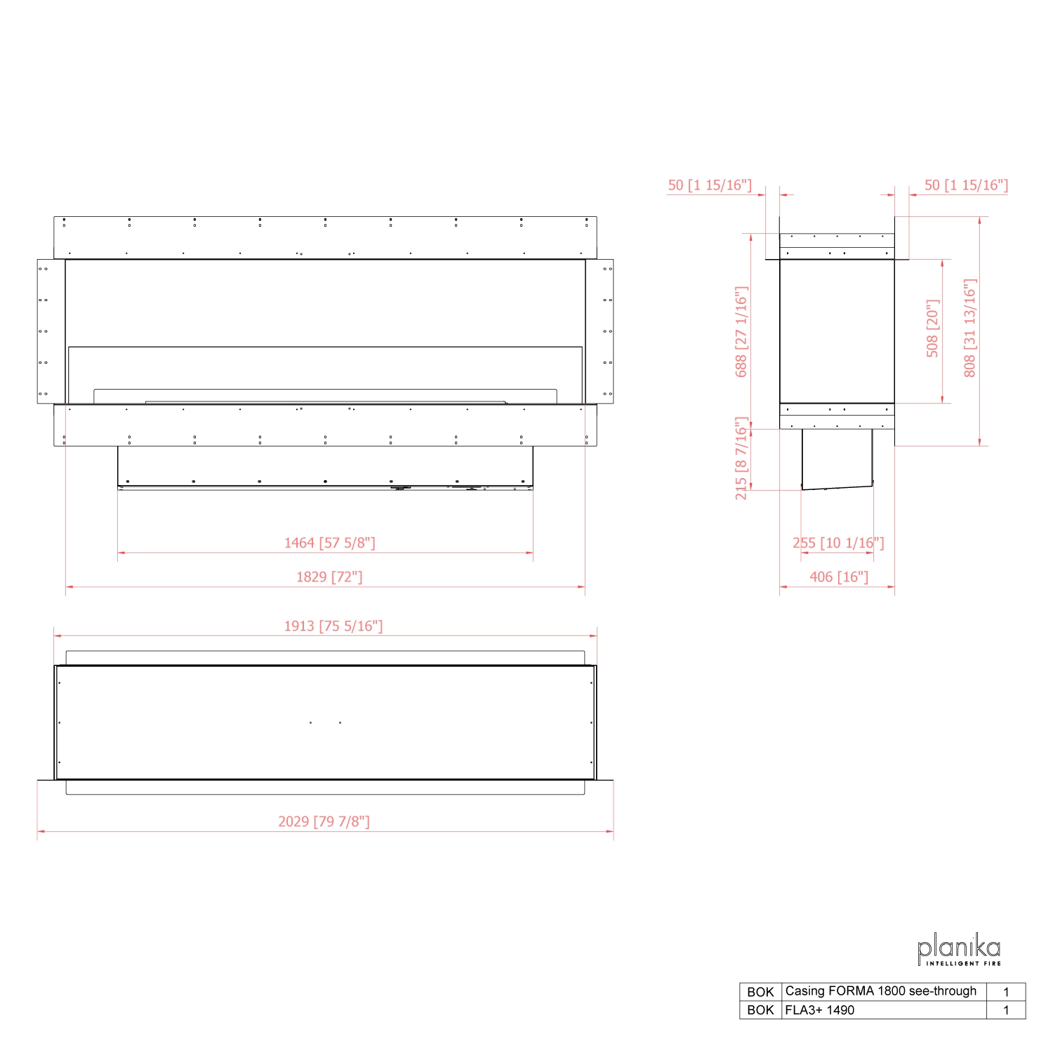 Forma 1800 doorkijk haard met een automatische Planika FLA4 of FLA4+ bio-ethanol brander.