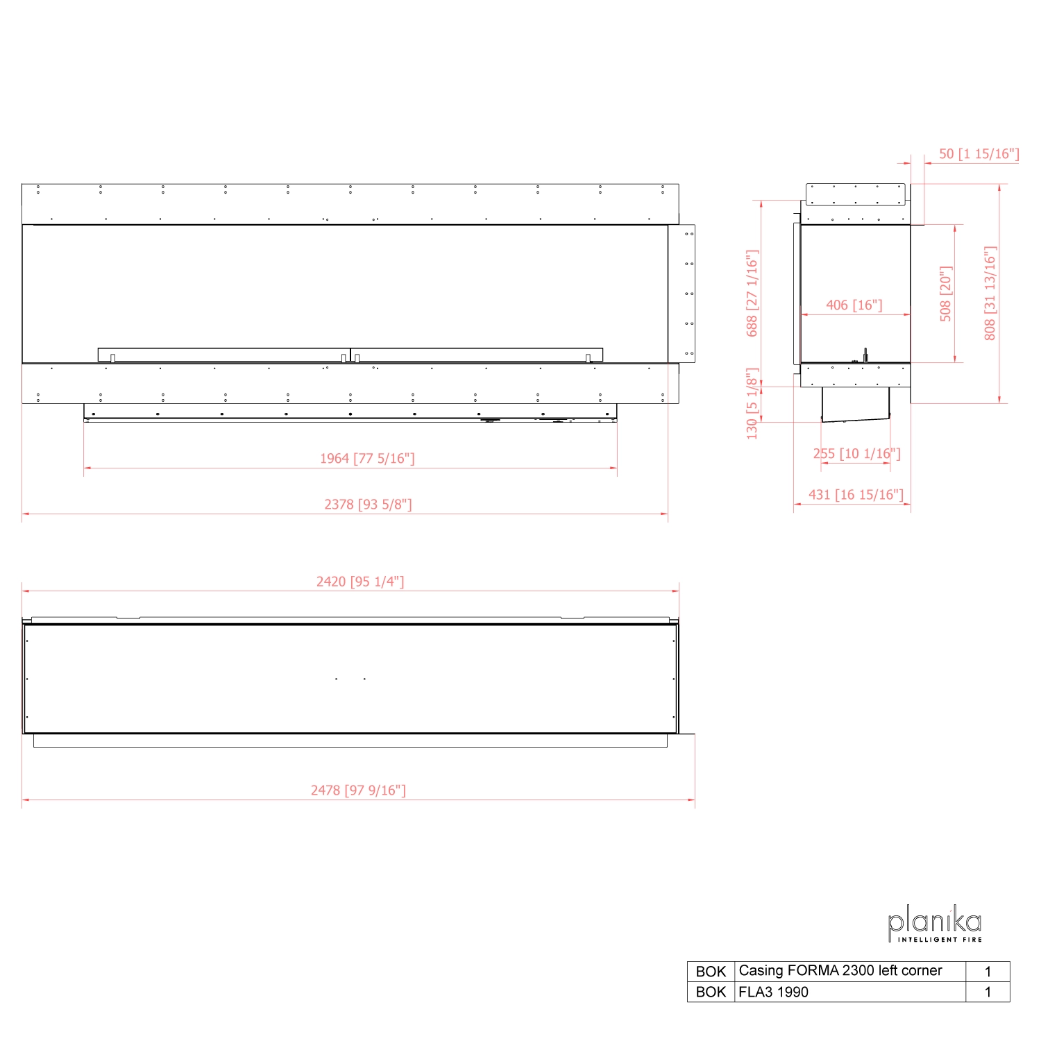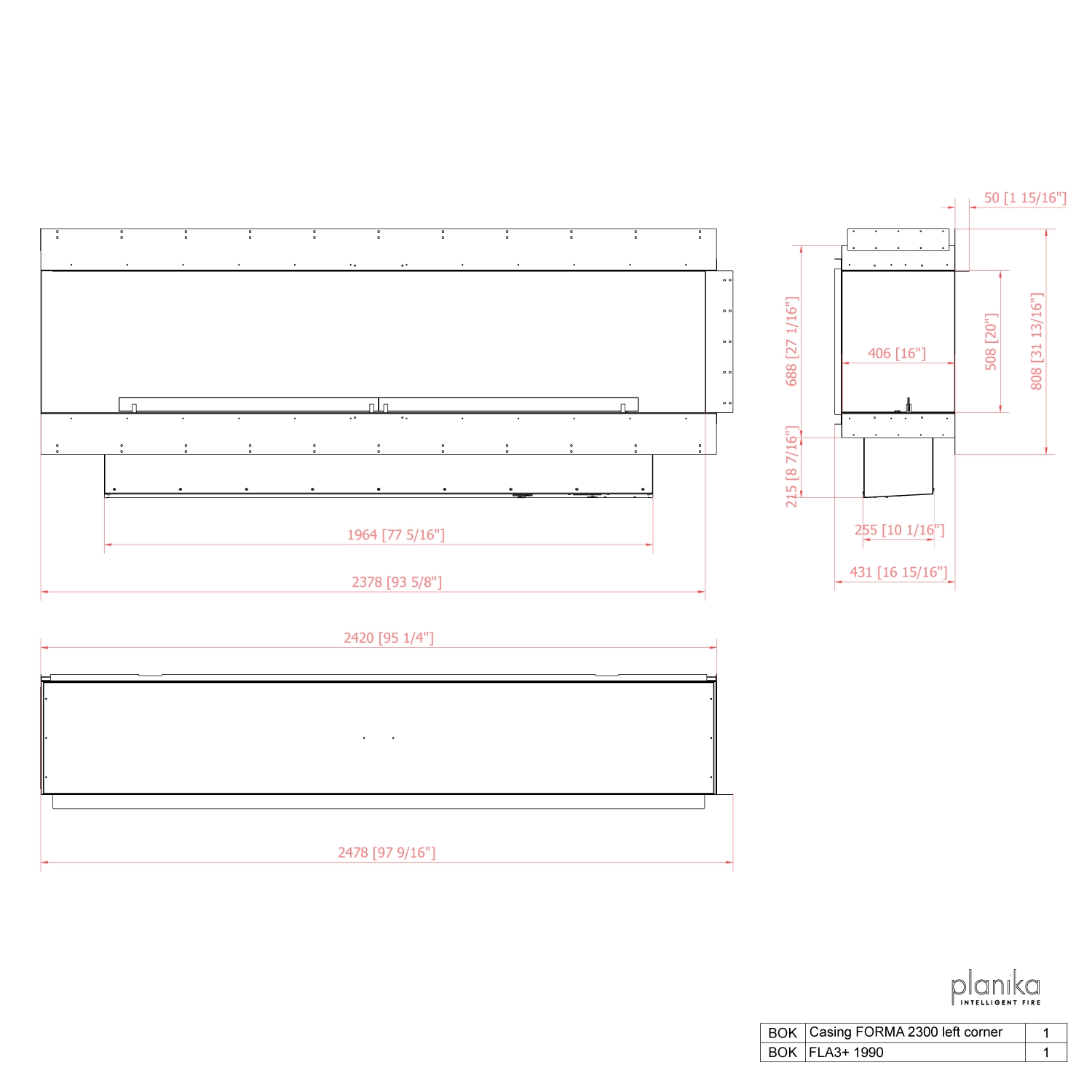 Planika Forma 2300 Left Corner is vervaardigd van gegalvaniseerd staal met een zwarte poedercoating en wordt geleverd met gehard glas. Dit tijdloze ontwerp biedt niet alleen duurzaamheid, maar beschermt de vlammen ook tegen tocht en windstoten, wat zorgt voor stabiele en prachtige vlammen.