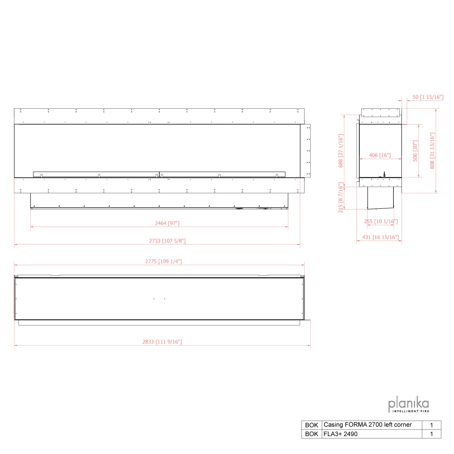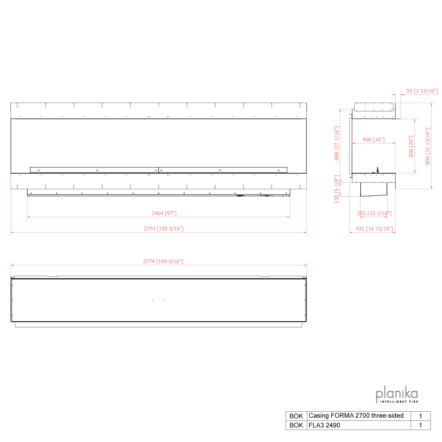 Planika Forma 2700 Three-Sided is een bio-ethanol haard voor inbouw, waarbij de vlammen van drie kanten zichtbaar zijn. Voor deze haard raden wij een minimale kamergrootte van 225 m3 aan.