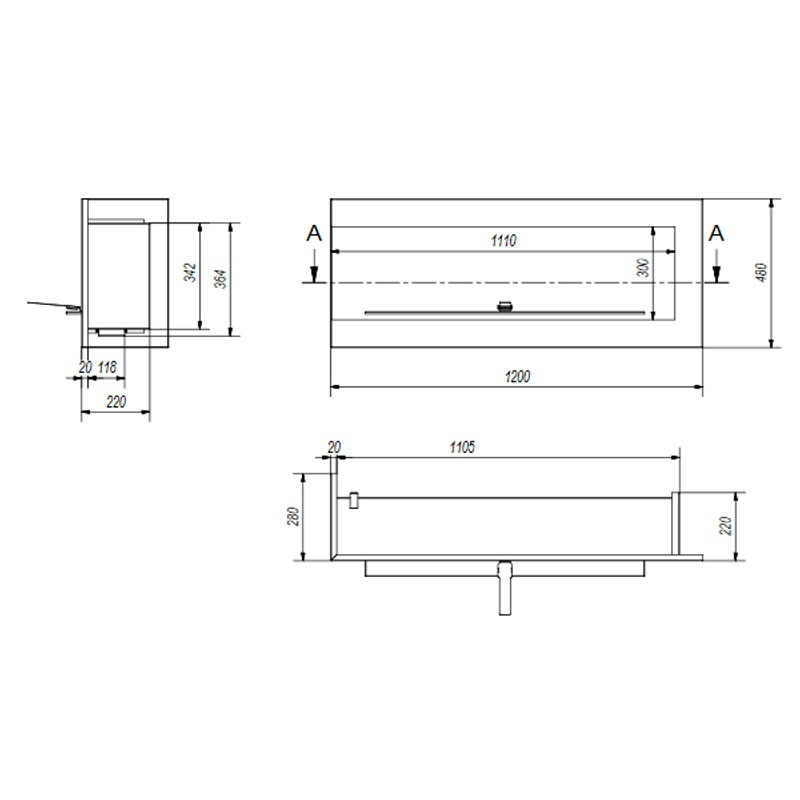 Bio-ethanol hoekhaard die linksdraaiend is en in een muur kan worden ingebouwd, zodat de vlammen van twee kanten te zien zijn.