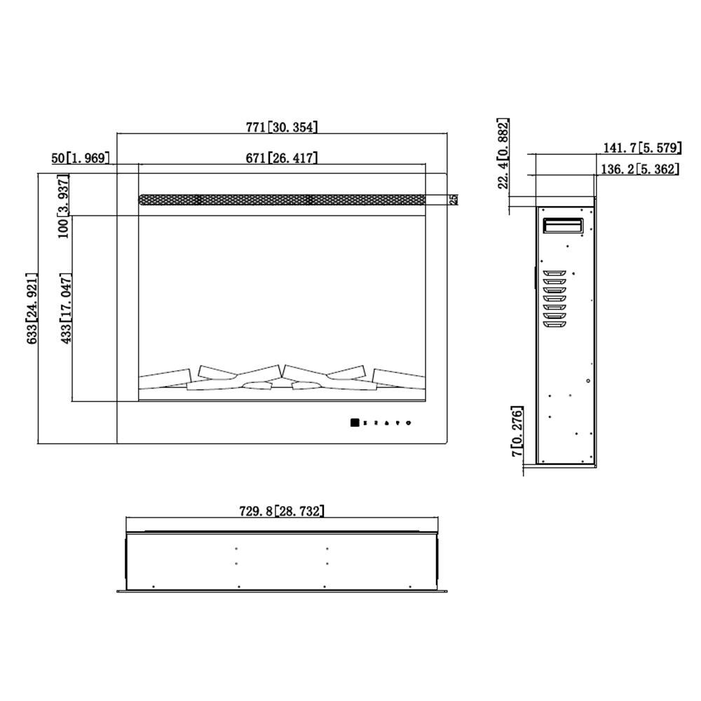 LED Pro elektrische inbouwhaard - 80 cm