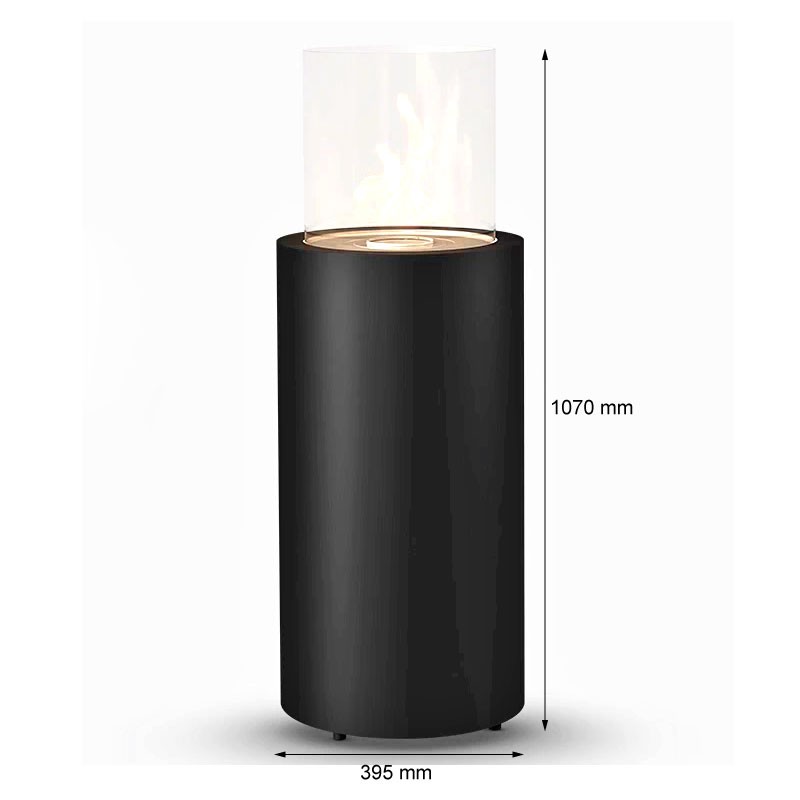 Planika Totem bio-ethanol buitenhaard. De inhoud van deze haard is 3 liter, wat een brandtijd van 7 uur oplevert. De afmetingen zijn H: 106,6 x Ø: 39,5 cm.