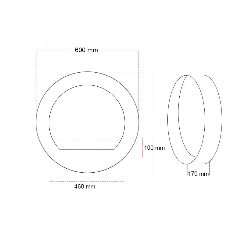 Ronde bio-ethanol wandhaard met een brandtijd van 5 uur. De haard is gemonteerd op een beugel, zodat die dicht tegen de muur past.