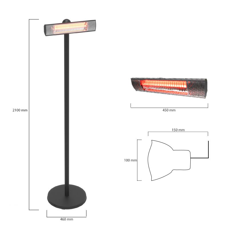 Terrasverwarmer vrijstaand vloermodel 1500 W, GT - Zwart