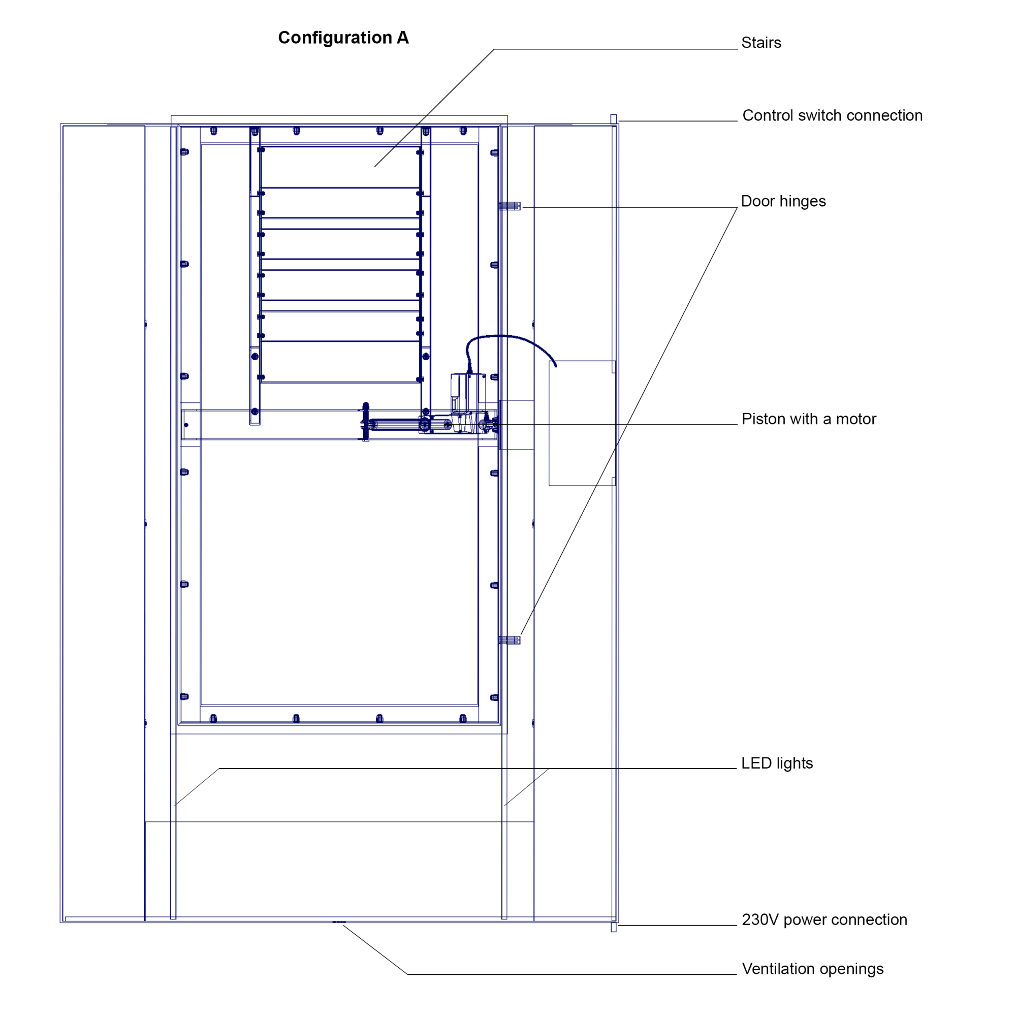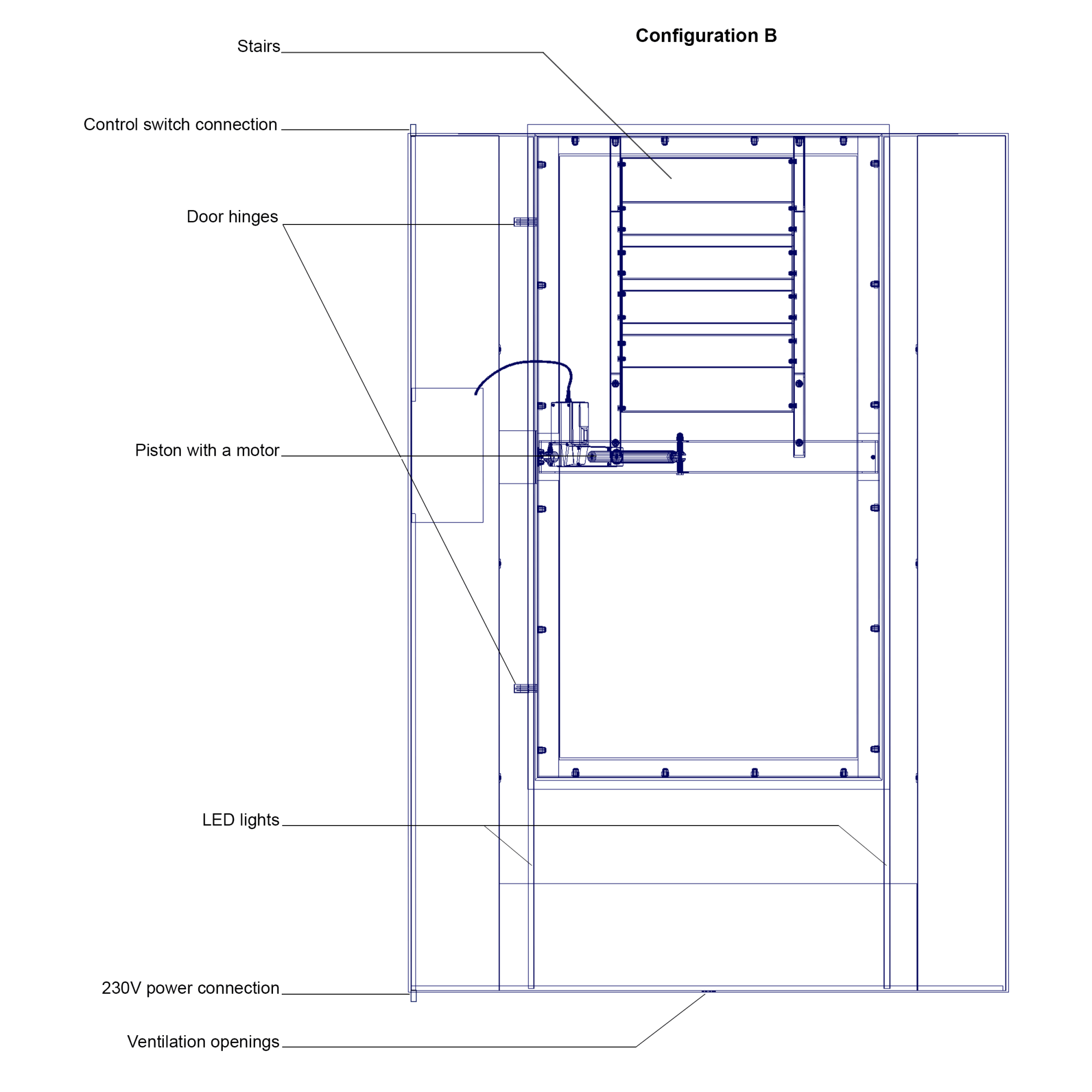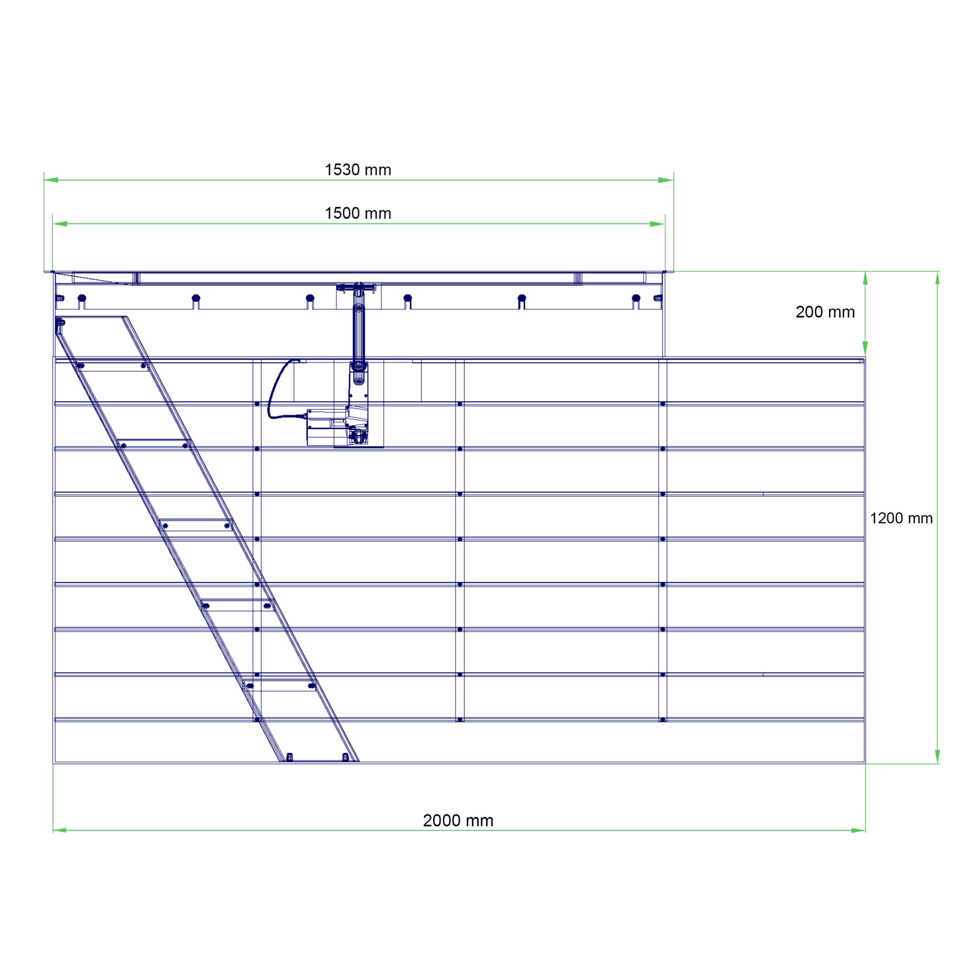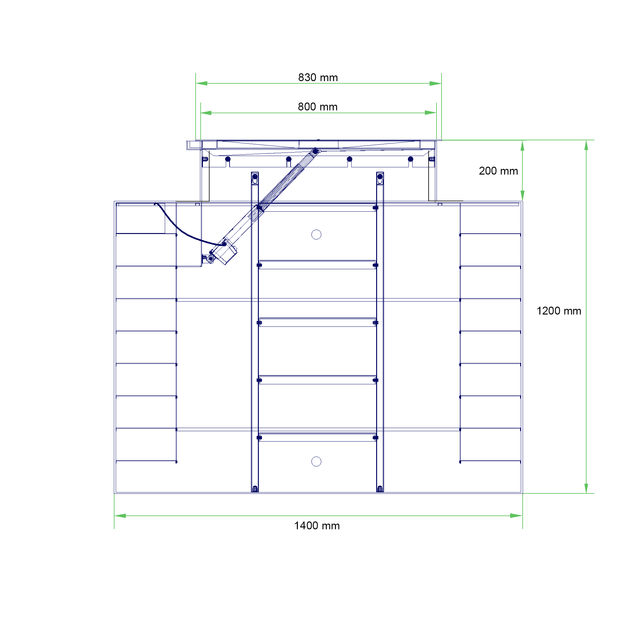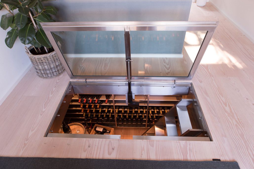 Grote wijnkelder voor inbouw in de vloer met opslagruimte voor maximaal 450 flessen wijn. Deze wijnkelder meet 200 x 140 x120 cm.