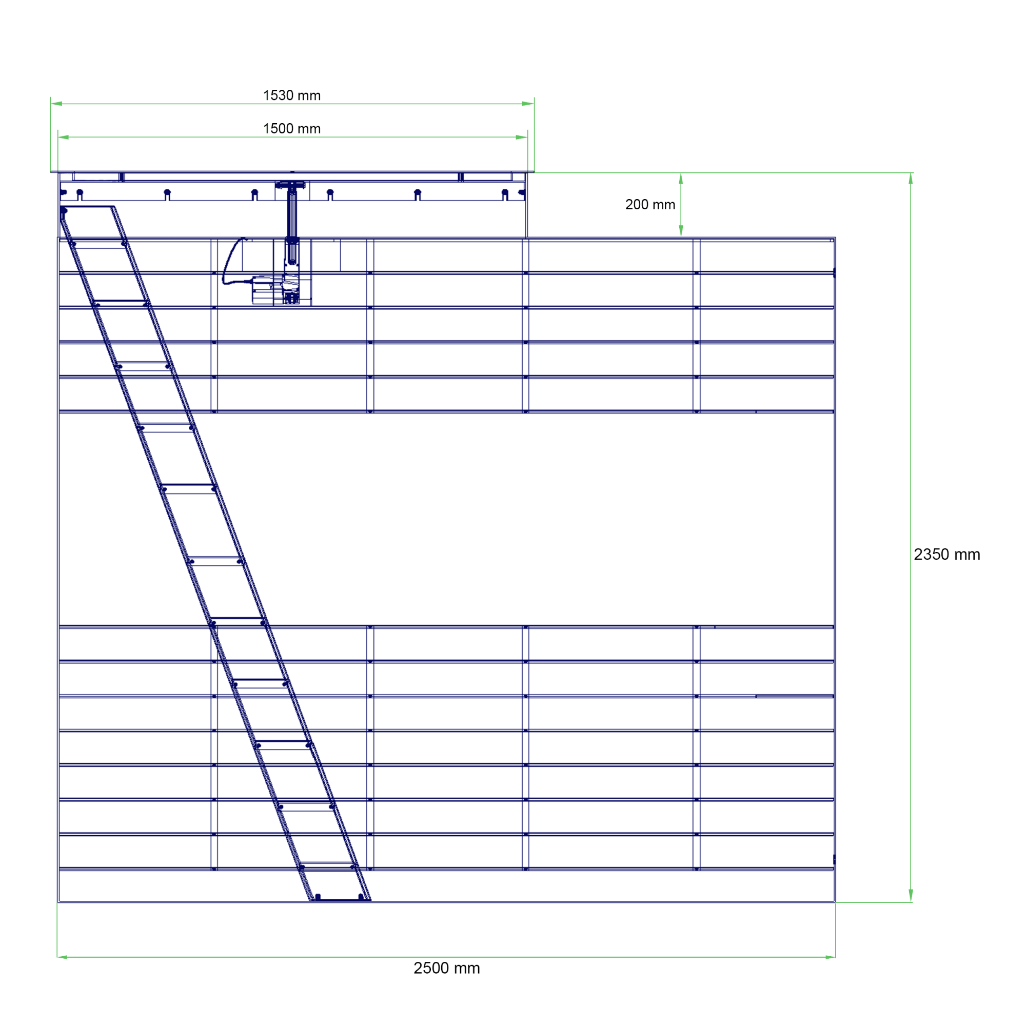 Grote elegante wijnkelder voor inbouw in de vloer met ruimte voor maximaal 1.000 wijnflessen. Deze wijnkelder meet 250 x 150 x 235 cm en is perfect voor een grotere wijncollectie.